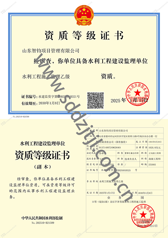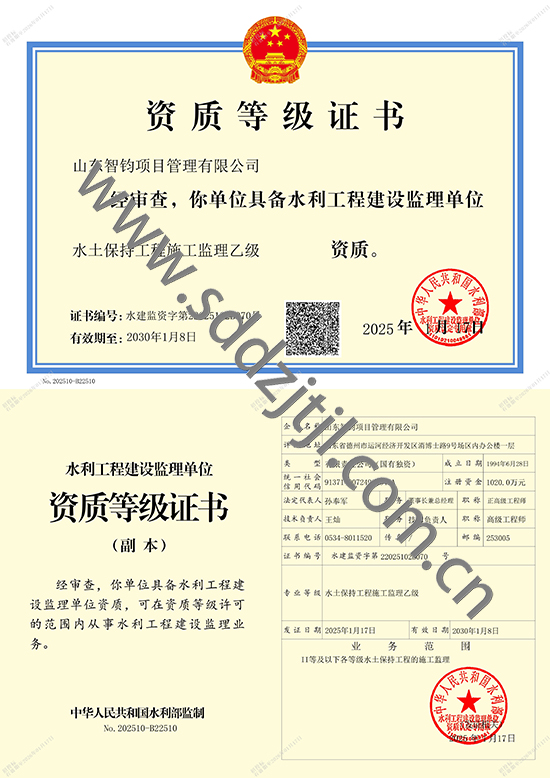 水利部水利工程施工監(jiān)理乙級和水、土保持工程施工監(jiān)理乙級資質(zhì)
