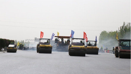 京臺(tái)高速高性能鋼渣抗滑磨耗層(上面層)試驗(yàn)段攤鋪施工觀摩交流